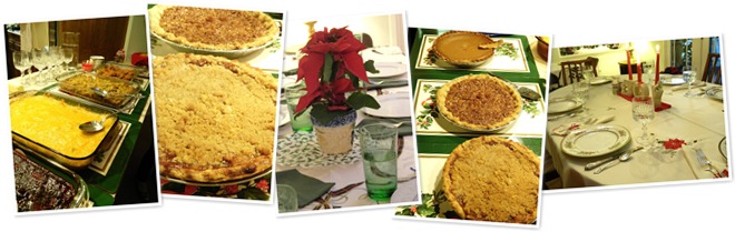 The Christmas dinner spread at G.G.’s….twice baked potatoes, stuffing, sweet potatoes, warm broccoli dish, turkey breast, and my lovely salad! I also shared my cranberry-mango chutney for those eating the turkey. For dessert…G.G.’s homemade pumpkin, pecan, and apple pies! So sad that I couldn’t try any because they looked oh.so.delicious! Next time I’ll be sure to bring a gluten free dessert, so I can indulge along with the rest of the family!